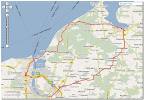 Profil: einige ‚Berge’, nur ein (1) Matschweg, nur ein (1) Kopfsteinpflaster, sonst asphaltiert, zur Hälfte Radweg